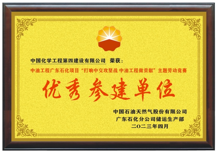 近日,由華北公司承建的廣東揭陽石化包裝廠房項目喜訊連連,先后收到業主單位中國石油天然氣股份有限公司廣東石化分公司發來的“感謝信”和廣東石化分公司儲運生產部授予公司的“優秀參建單位”榮譽獎牌。