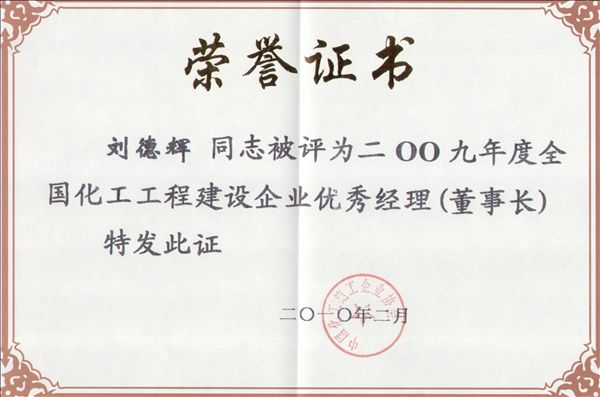 近日,經中國化工施工企業協會評定,公司榮獲2009年度全國化工工程建設優秀企業,公司總經理、黨委書記劉德輝榮獲“2009年度全國化工施工企業優秀經理(董事長)”光榮稱號。
