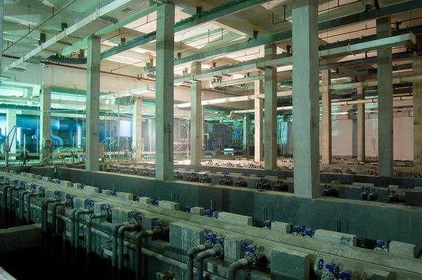 廣州市京溪地下凈水廠工程。該工程日處理污水10萬噸,安裝工程約4200萬元。設計采用先進的“膜生物反應器MBR污水處理工藝”,污水廠出水水質達到一級A,相當于地表Ⅳ類水以上,稍作過濾即可飲用。整套處理工藝設備采用“地下全埋式”,征地面積大為縮小,僅相當于傳統工藝正常占地面積的1/10。整個廠設在地下,分2層,最深-20米,目前是采用此種工藝全球最大的地下污水處理廠。