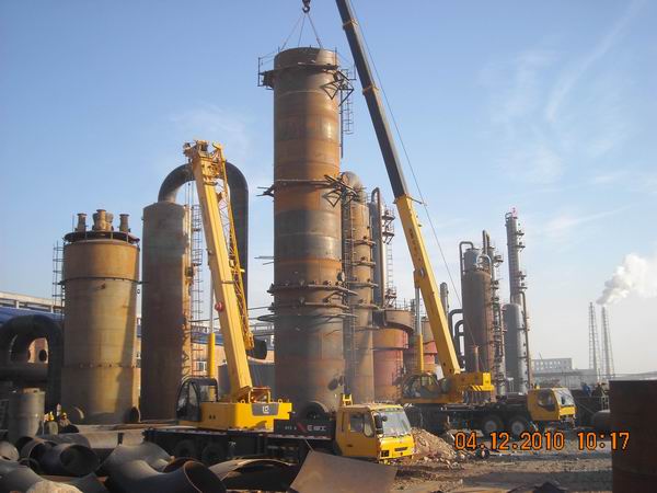 內蒙古齊華礦業有限責任公司二期復合肥配套8萬噸合成氨項目,是入內蒙不到兩年的內蒙古分公司承接的第一個大化肥項目。最初的合同價是1000萬左右,經過分公司領導的不懈努力和現場的突岀表現,業主最終把包括造氣、脫硫、脫碳、變換、精脫、壓縮、醇烴化、氨合成、冷凍、循環水等幾乎全廠所有工段的安裝工作都交給了我方,估計最終的建安工作量將突破3500萬。由于該項目90%以上的設備都屬于“拆舊用舊”,因此施工難度很大。施工人員在正常安裝之前,需要對舊設備進行檢測和修護,還要剝除設備上厚厚的銹皮,給它穿上漂亮的“外衣”,又由于這些舊設備基本上都己找不到當初的設備圖紙,參數不全,因此現在的設計工藝往往與設備對不上,很多地方都需要根據工藝流程現場來定位,更加大了我方的管理難度和工作量。
