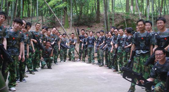 訓練的第一個項目是鐳戰(zhàn)對抗。4個隊迅速組成兩個對抗的隊伍,經(jīng)過兩場激戰(zhàn),最終龍之隊和紅牛隊以飽滿的戰(zhàn)斗激情取得開門紅。第二個項目為沼澤浮橋。考驗團隊協(xié)作和邏輯思維能力,每個隊伍利用三個油桶和兩塊木板,讓所有隊員一起通過一片沼澤地,整個過程只有油桶可以接觸地面,方法不限,所用時間最少者獲勝。尖兵隊和紅牛隊領先到達目的地。
