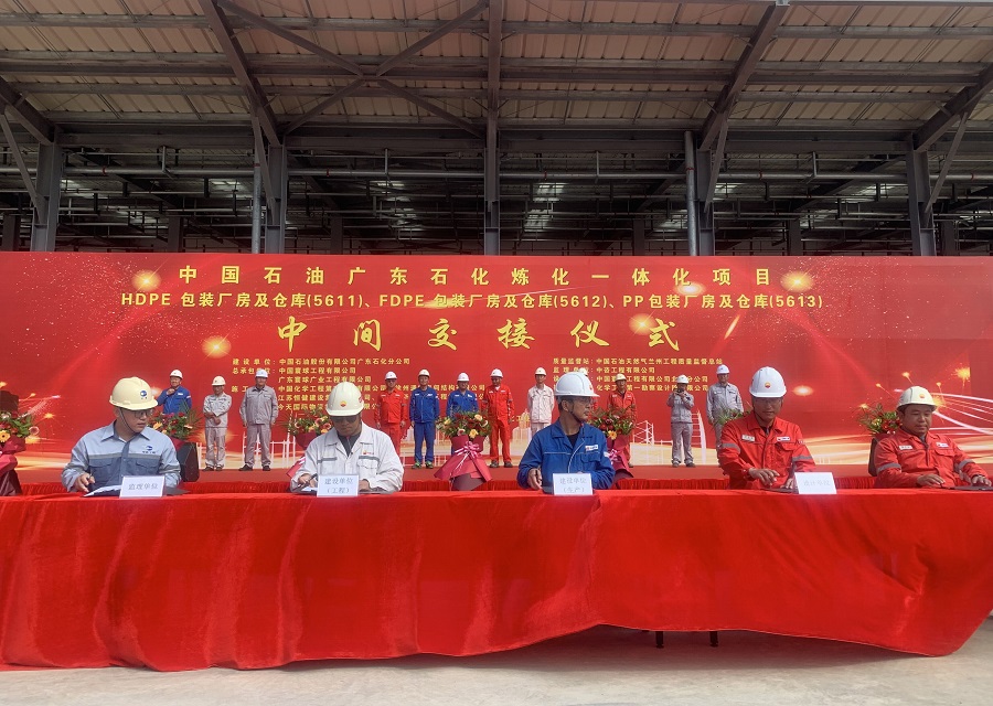 8月28日,由華北公司承建的廣東石化煉化一體化項(xiàng)目聚烯烴包裝廠房及倉(cāng)庫(kù)安裝工程舉行中交儀式。中國(guó)石油廣東石化公司副總經(jīng)理李錫均,中國(guó)寰球總項(xiàng)目部項(xiàng)目經(jīng)理魏延長(zhǎng),廣東寰球廣業(yè)工程有限公司董事長(zhǎng)焦晉安、副總經(jīng)理莊旭,公司副總經(jīng)理趙亮出席儀式。