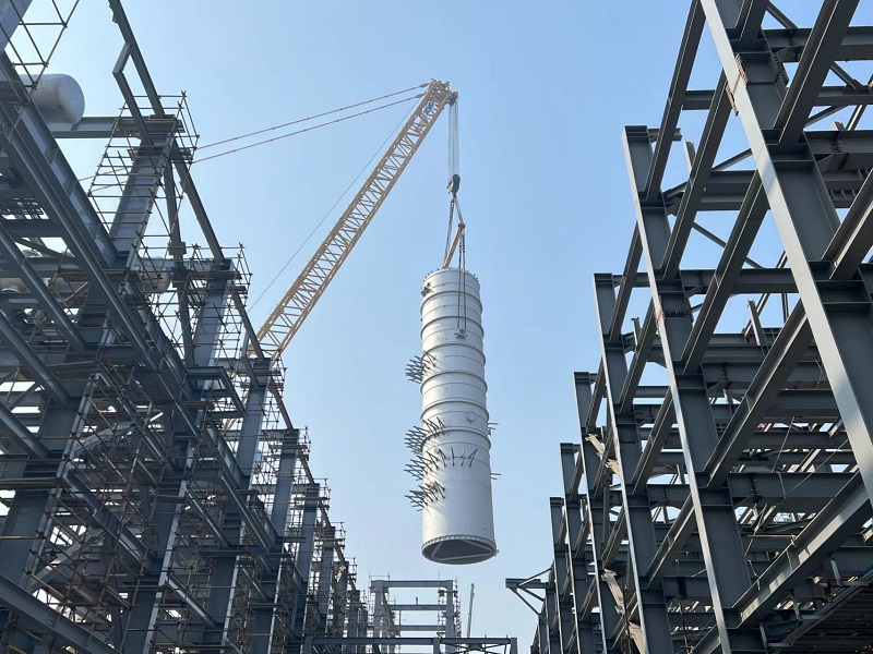 與此同時,由東北公司承建的大連恒力石化項目苯酚丙酮裝置異丙苯單元烷基化反應器順利實施吊裝,如期完成施工關鍵節點。