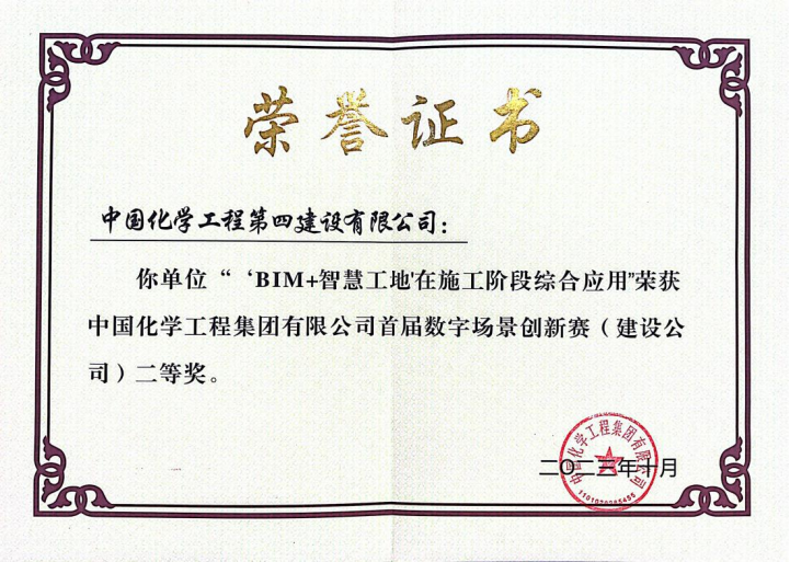此次大賽由集團公司主辦,旨在積極推進集團數字化轉型工作,提升工程業務全生命周期數字化水平,促進企業參與數字化工廠、智慧化工園區建設,擴大推廣數字化場景與應用。大賽中共有18家工程公司與20家建設公司入圍復賽,由公司技術部與湖南港晨建設工程有限公司在岳陽EOD自貿片區數字經濟產業綜合體建設項目實施的“‘BIM+智慧工地’在施工階段綜合應用”榮獲了集團公司首屆數字場景創新賽二等獎。