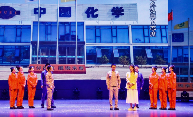港晨公司傾情演繹的舞臺劇《追光·建未來》再現了四化建人在70年征程中,為國家建設夜以繼日奮斗的動人場景,演繹了化建人鳳凰涅槃、浴火重生的宏圖壯志,歌頌了建設者們向著美好生活踔厲奮發(fā)的豪邁氣概。