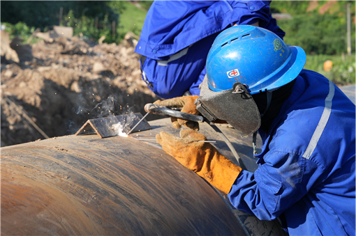 下午13:00,應急搶險突擊隊抵達平江后,隨即爭分奪秒展開搶險修復工作。隊員們頂著高溫和烈日,30分鐘完成現場踏勘,確定施工方案,并著手對13根12米長的DN1200管道進行對口、點焊、焊接、下管,全面開展搶修工作。