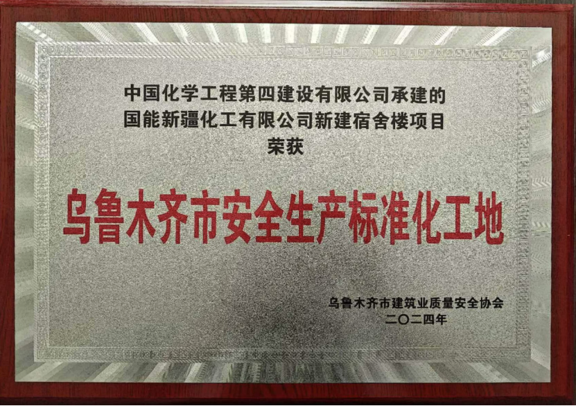 近日,由西部公司承建的國能新疆化工有限公司新建宿舍樓項目,憑借安全生產標準化管理、綠色施工及精益管理等綜合優勢,獲評“烏魯木齊市安全生產標準化工地”榮譽稱號。