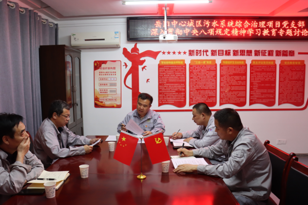 4月22日,岳陽中心城區(qū)污水治理項目黨支部召開深入貫徹中央八項規(guī)定精神學習教育專題學習研討會。會議圍繞《習近平關于加強黨的作風建設論述摘編》和中央八項規(guī)定及其實施細則精神組織學習并開展研討,全面加強項目團隊作風建設。會議強調,要以學習教育為重要契機,強化責任擔當意識,嚴守各項規(guī)章制度,確保項目建設依法依規(guī)推進,堅決杜絕違規(guī)行為,全力營造風清氣正的工作環(huán)境,以作風建設新成效推動項目建設再上新臺階,為公司高質量發(fā)展做出更大貢獻。