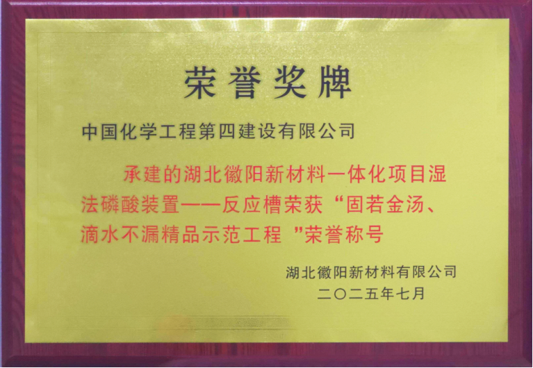 近日,由中南公司承建的湖北徽陽新能源新材料項目核心裝置——濕法磷酸反應槽,以“零缺陷、零滲漏”的卓越質量順利通過驗收,獲業(yè)主授予“固若金湯、滴水不漏精品示范工程”榮譽稱號。