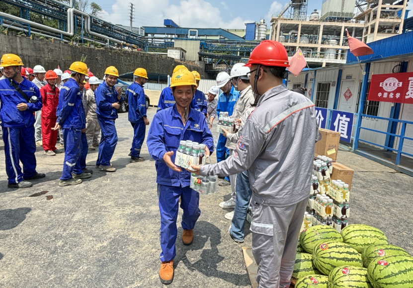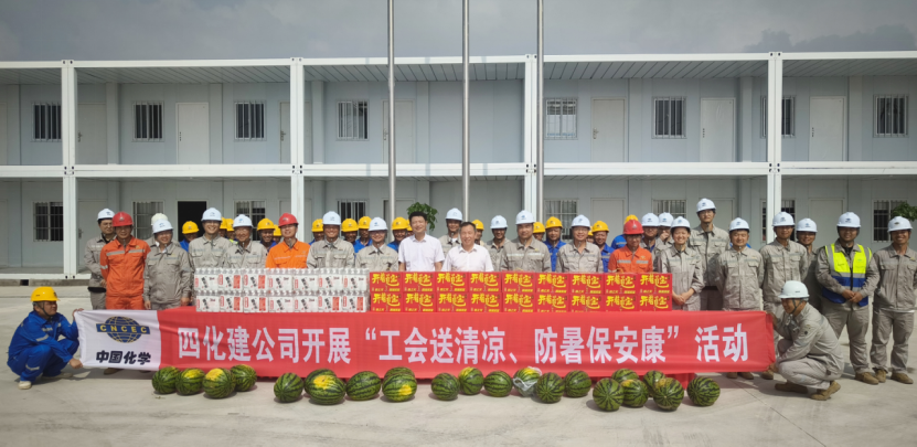 近日,華南公司貴州息烽PPA項(xiàng)目部聯(lián)合相關(guān)方開展“夏日送清涼,防暑保安康”活動(dòng),為一線勞動(dòng)者發(fā)放解暑飲料、涼茶、西瓜等物資。項(xiàng)目負(fù)責(zé)人叮囑大家重視高溫作業(yè)安全,科學(xué)安排時(shí)間、勞逸結(jié)合,錨定“8.31”機(jī)械竣工目標(biāo)全力沖刺,以實(shí)際行動(dòng)彰顯“化建湘軍”的高效履約與專業(yè)實(shí)力。