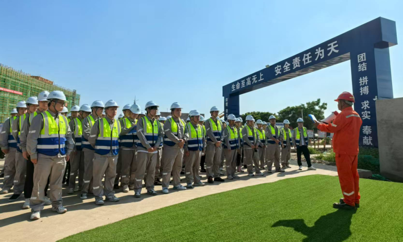 作為新員工入職培訓(xùn)的關(guān)鍵環(huán)節(jié),此次現(xiàn)場觀摩是課堂專業(yè)知識培訓(xùn)的重要補充,旨在幫助新員工將理論與實踐融合,提前感受“從教室到職場、從學(xué)生到職場人”的轉(zhuǎn)變。安全是進入施工現(xiàn)場的第一課,在各項目現(xiàn)場,安全經(jīng)理對新員工進行入場前的安全交底,明確“安全第一,一切行動聽指揮”的紀(jì)律要求,并特別提醒做好高溫防暑措施,筑牢安全防線。