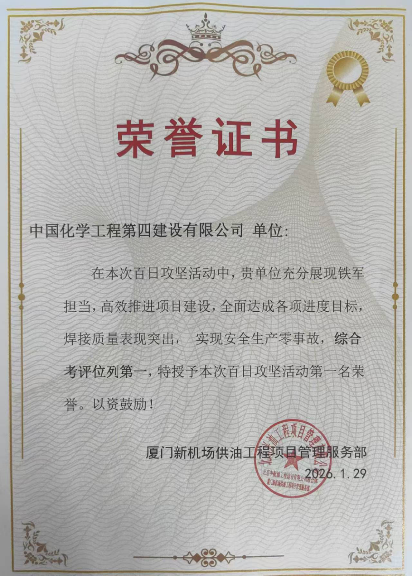 近日,在廈門新機場供油工程項目“百日攻堅”活動總結表彰會上,公司憑借高效的工程推進、完美的焊接質量與“零事故”的安全業績,在綜合考評中榮獲第一名。