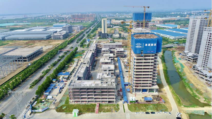 港晨公司岳陽自貿片區產業綜合體項目首棟“高大帥”樓宇封頂