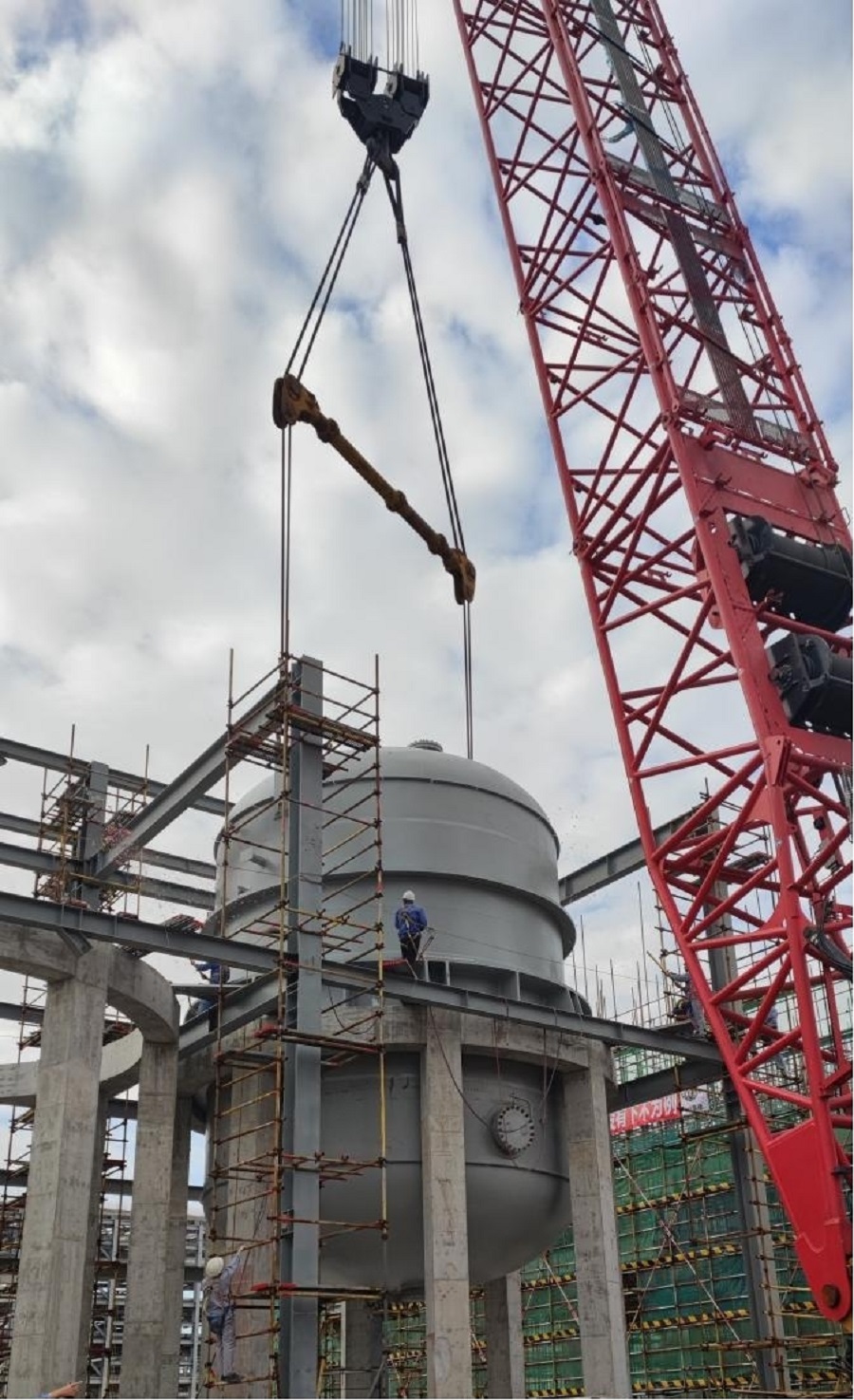 經過項目部統籌安排,制定吊裝方案,強化現場協調與監管,設備吊裝取得圓滿成功。