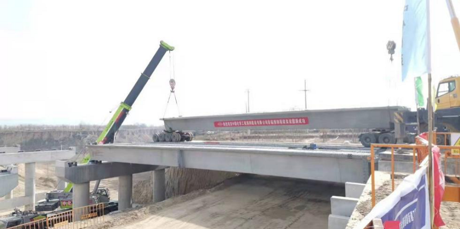西部分公司榆中生態創新城夏緯七路項目首榀箱梁架設啟動
