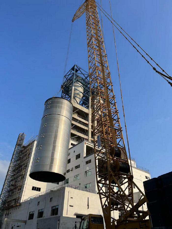 在項目現場,處處呈現的是工人們不辭辛苦工作場景,白天進行料倉的吊裝工作,晚上加班加點進行焊接、組裝。截至目前,已經組裝好的8臺存儲料倉完成了吊裝,余下的16臺存儲料倉也將會于3月20日完成。同時,正在緊張進行12臺摻混料倉撥罐施工,并計劃4月下旬完成所有摻混料倉的吊裝施工。