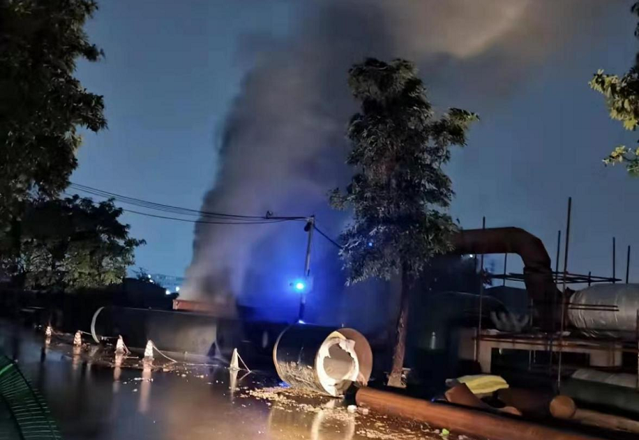 近日,華南公司東莞中堂熱電聯(lián)產(chǎn)二期熱網(wǎng)二期工程完成管道蒸汽吹掃工作。