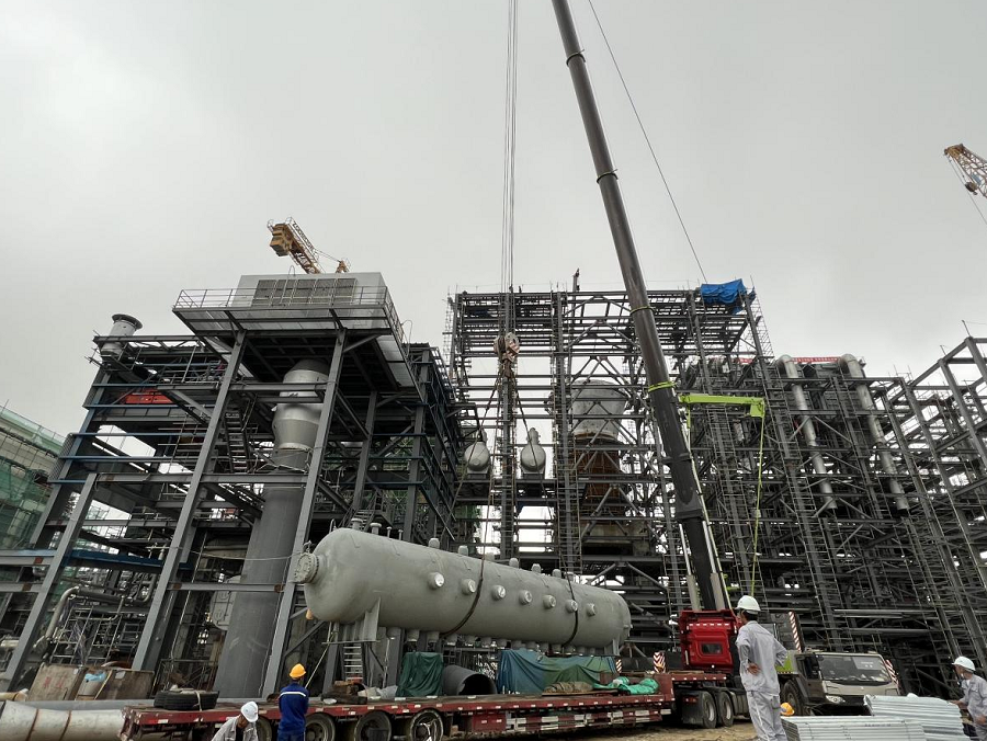 中化勞務廣東東粵環保項目順利完成兩臺汽包吊裝