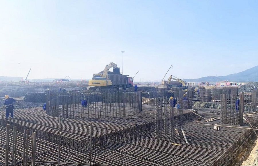 該裝置項目共有7個單元,自8月15日開工以來,項目部克服工期時間緊、地質(zhì)巖石多、施工現(xiàn)場點多面廣、疫情防控等諸多困難,全力搶抓進(jìn)度截至目前,初期雨水池池壁鋼筋已綁扎完成,氧化提濃單元核心設(shè)備基礎(chǔ)承臺澆筑完成,精餾單元各框架基礎(chǔ)陸續(xù)施工,異丙苯單元大面積開挖,裝置變電所基礎(chǔ)柱、梁混凝土澆筑完成。項目將充分利用好當(dāng)前晴好天氣,合理組織班組施工作業(yè),全力加快施工進(jìn)度,確保完成各項既定任務(wù)為黨的二十大勝利召開獻(xiàn)禮。