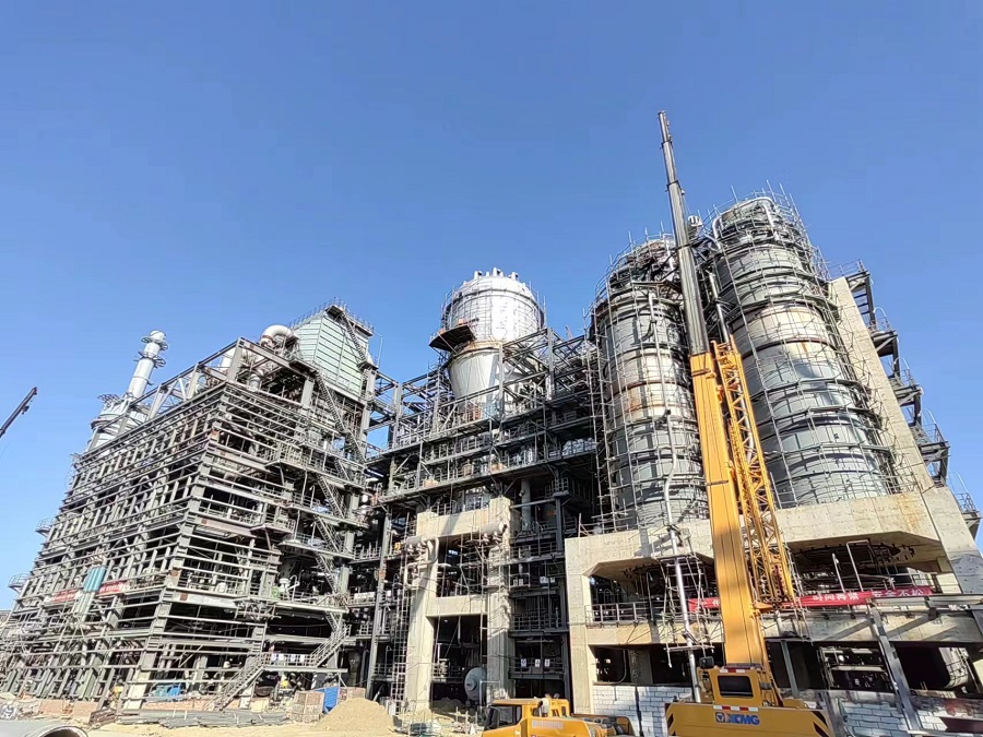 在國慶大干中,中南公司揭陽項目施工現(xiàn)場一片繁忙,900名施工人員奮戰(zhàn)在一線,只為保證脫硫脫碳、儲漿罐組、循環(huán)水場多項裝置能夠于10月20日順利開車。項目部加強施工組織,力爭把前期高溫、疫情帶來的影響降到最低,奮力沖刺節(jié)點目標(biāo)。