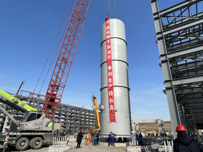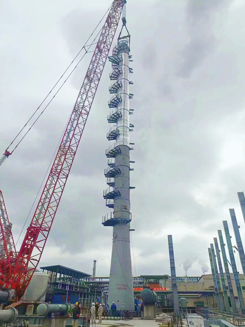 該脫輕塔上塔直徑3米65米、重量158噸,是1-丁烯裝置的核心設備,也是工程中最高最重的立式設備。為確保此次吊裝順利完成,項目部克服工期緊張、工序復雜等諸多不利因素影響,精心編制了吊裝專項施工方案,對吊裝人員進行安全、技術、質量等方面的交底工作,確保項目“開年第一吊”的順利完成(通訊員  孫善義)