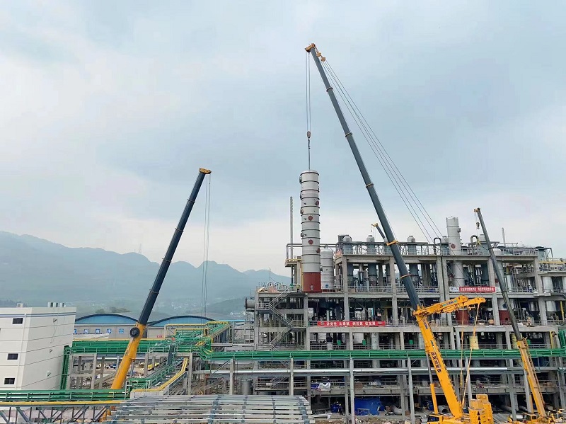 華南公司貴州(息烽)開磷PPA項目三臺解吸塔吊裝完成