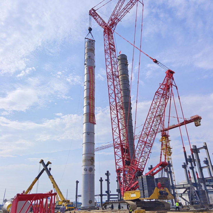為響應(yīng)公司“奮戰(zhàn)四季度、決勝雙百億”號召,中秋國慶雙節(jié)期間,項目部全體人員堅守施工一線,確保項目吊裝等各項工作穩(wěn)步推進(jìn)。此次吊裝的輕組分塔規(guī)格為Φ3636×59100、設(shè)備自重123噸,重組分塔規(guī)格為Φ3940×65800、設(shè)備自重175噸,是項目主裝置的關(guān)鍵設(shè)備。