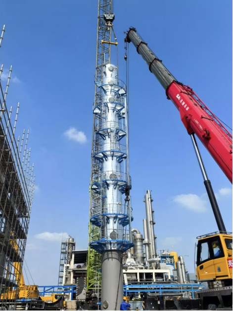 4月1日,由中化勞務公司承建的衛星化學股份有限公司年產9萬噸丙烯酸和10萬噸精丙烯酸安裝工程項目完成首臺4C-130汽提塔吊裝作業,標志著該項目全面進入設備安裝階段,為后續工程推進打下扎實基礎。